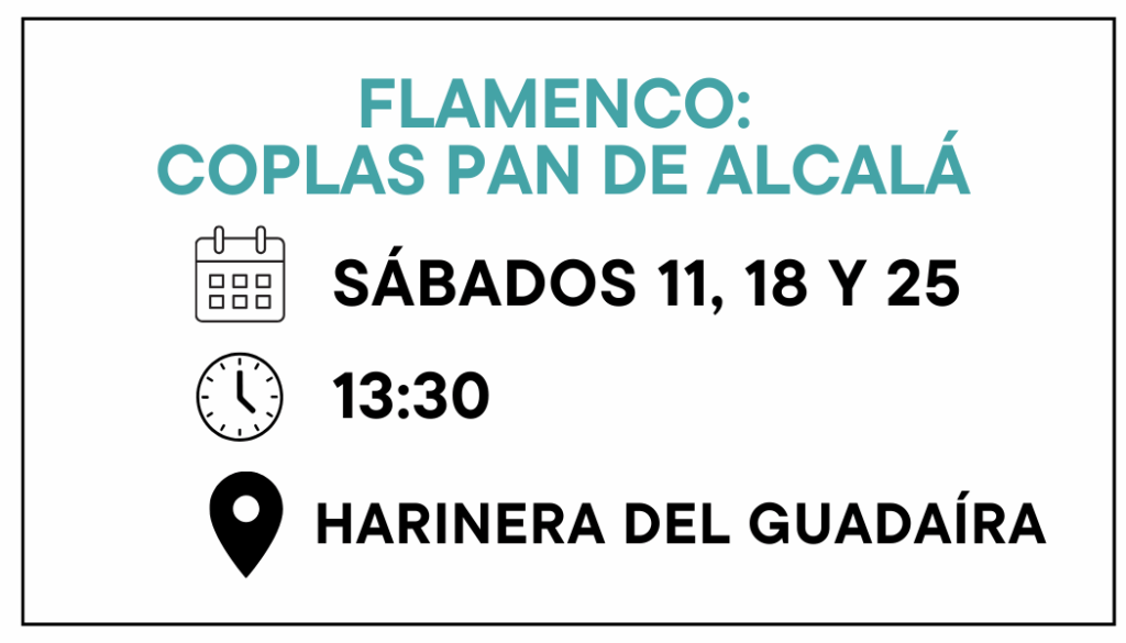 Disfruta de un espectáculo de flamenco en directo con coplas dedicadas al pan de Alcalá. La actuación se realizará al final de cada sesión de la mañana, sin necesidad de reserva previa.