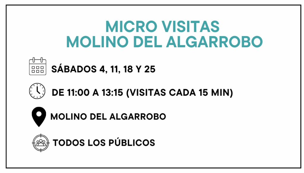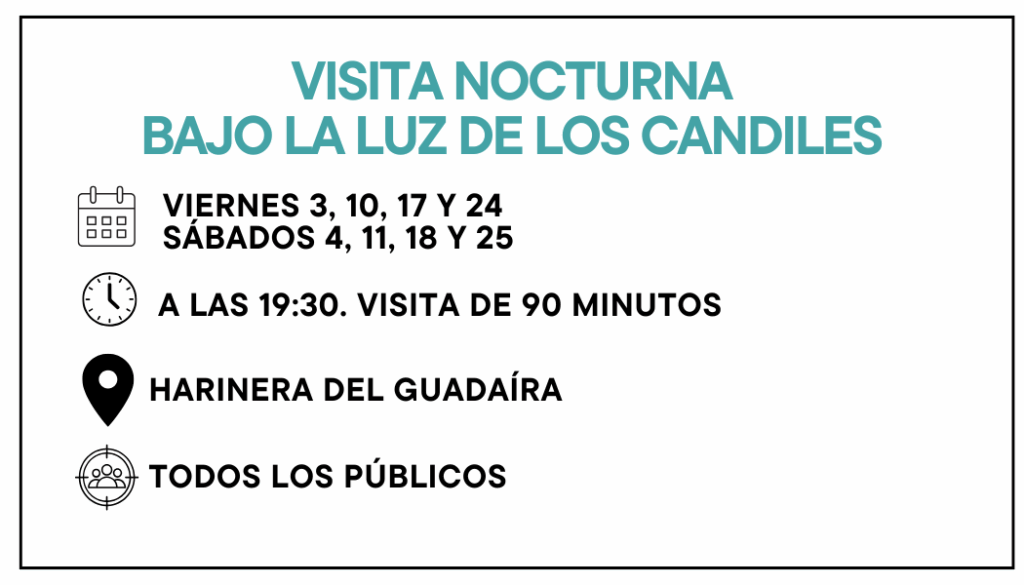 Iniciaremos un paseo con candiles para descubrir el rico patrimonio industrial. Cerca del río veremos los molinos de San Juan, Benarosa y Oromana. Visitaremos el interior del molino del Algarrobo para conocer su historia y arquitectura